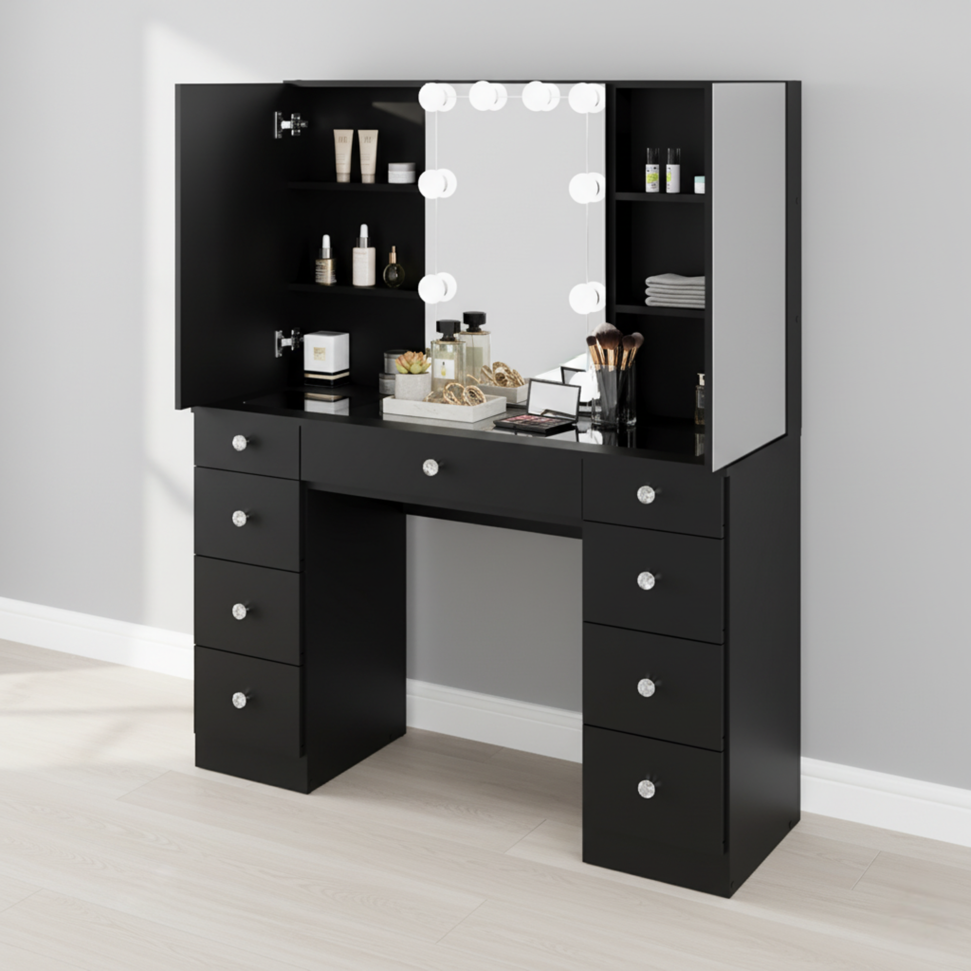 - Nine Drawers: Organize all your beauty essentials and accessories with ease.
